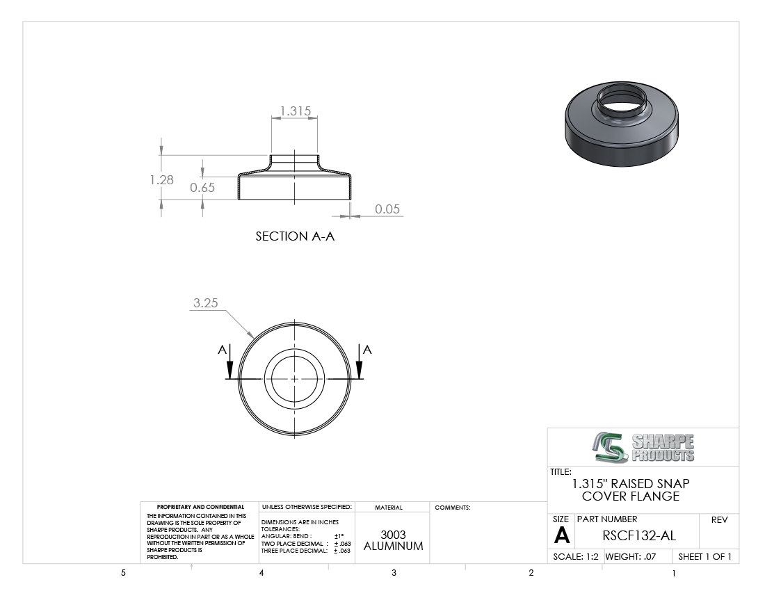 RAISED SNAP COVER FLANGE, 1 PIPE (1.315 O.D.), ALUM 3003 3 1/4 DIA.)