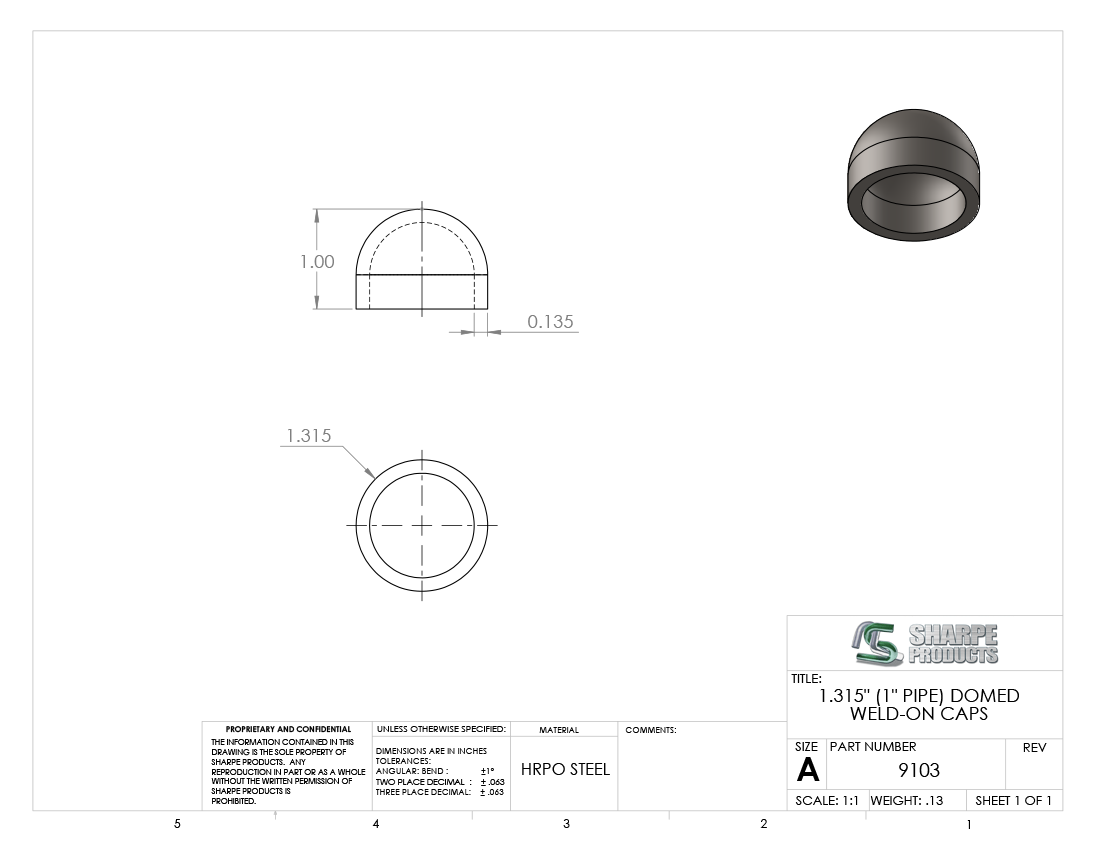 #9103 - STEEL DOMED WELD-ON CAP 1" PIPE