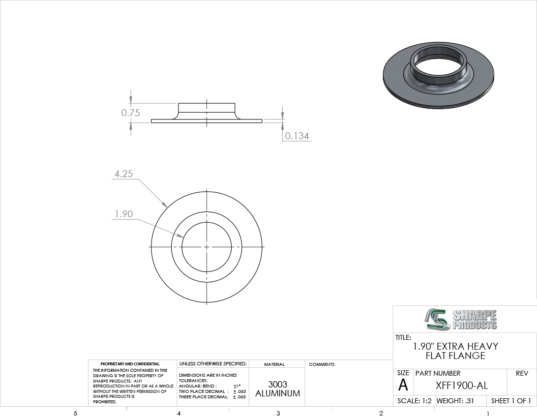 XTRA HVY FLAT FLANGE, 1 1/2 PIPE (1.90 O.D.), PLAIN, ALUM 3003