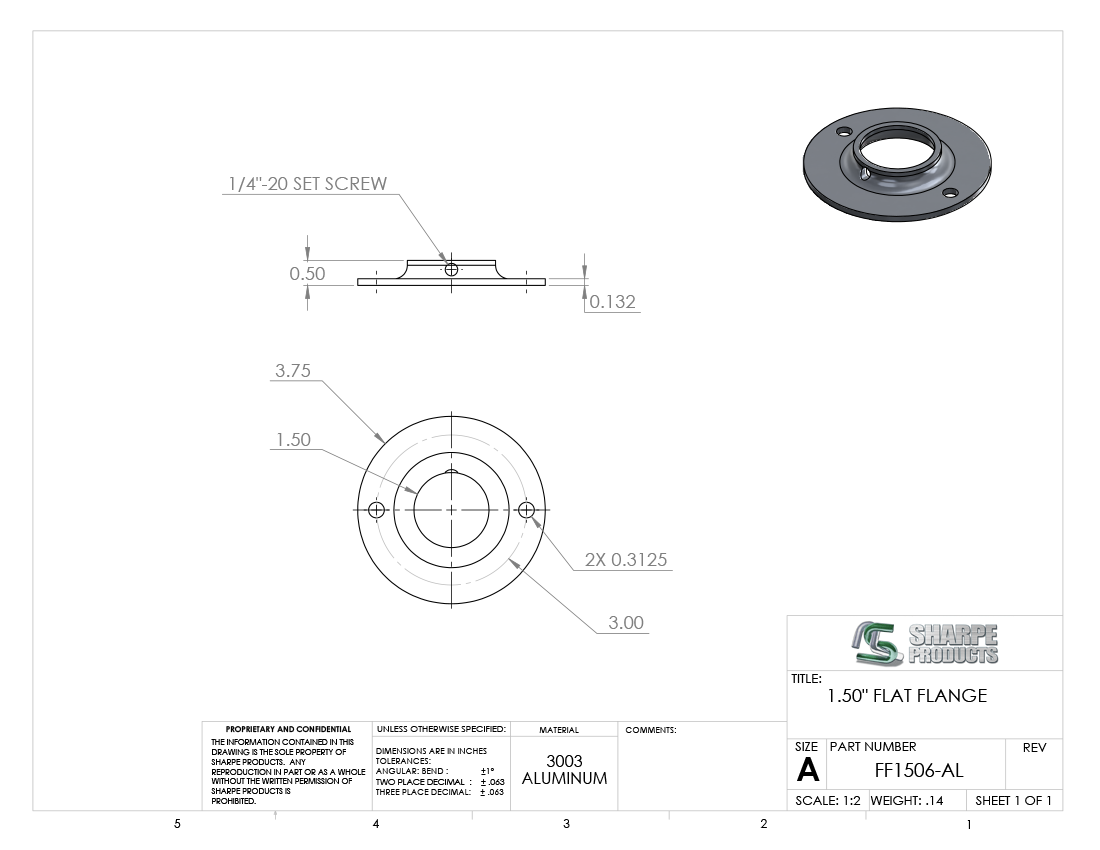 FLAT FLANGE, 1 1/2 O.D. W/ (2HOLES & SET SCREW, ALUM 3003