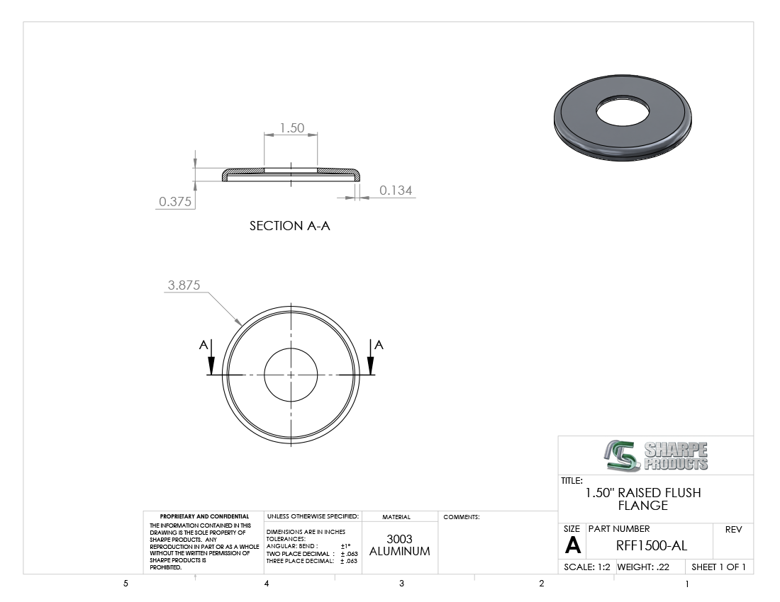 RAISED FLUSH FLANGE, 1 1/2 O.D. PLAIN, ALUM 3003