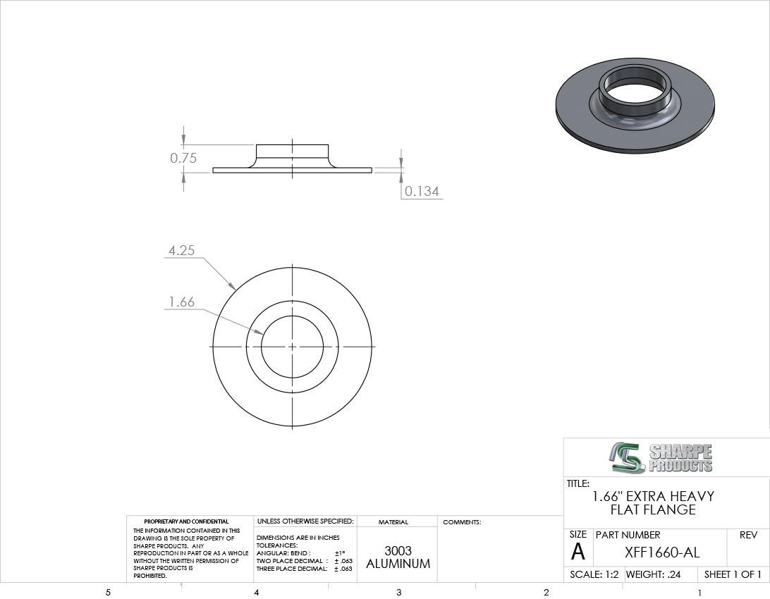XTRA HVY FLAT FLANGE, 1 1/4 PIPE (1.66 OD) PLAIN, ALUM