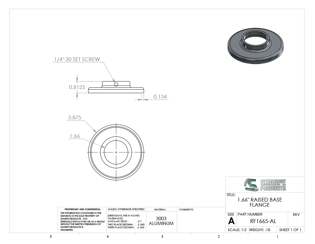 RAISED FLANGE, 1 1/4 PIPE (1.66 O.D.) W/ SET SCREW, ALUM (3003)