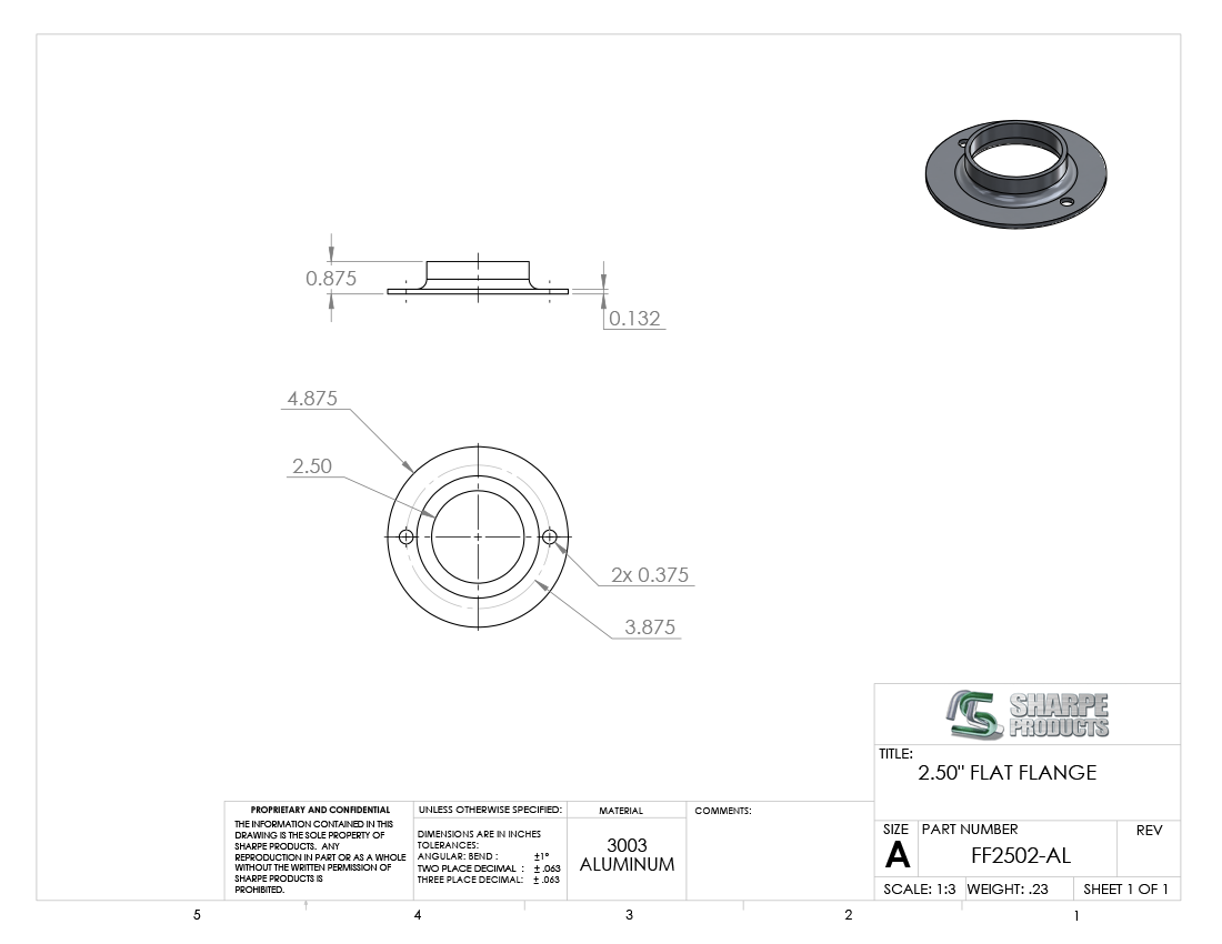 FLAT FLANGE, 2 1/2 O.D. W/ (2 ) HOLES, ALUM 3003