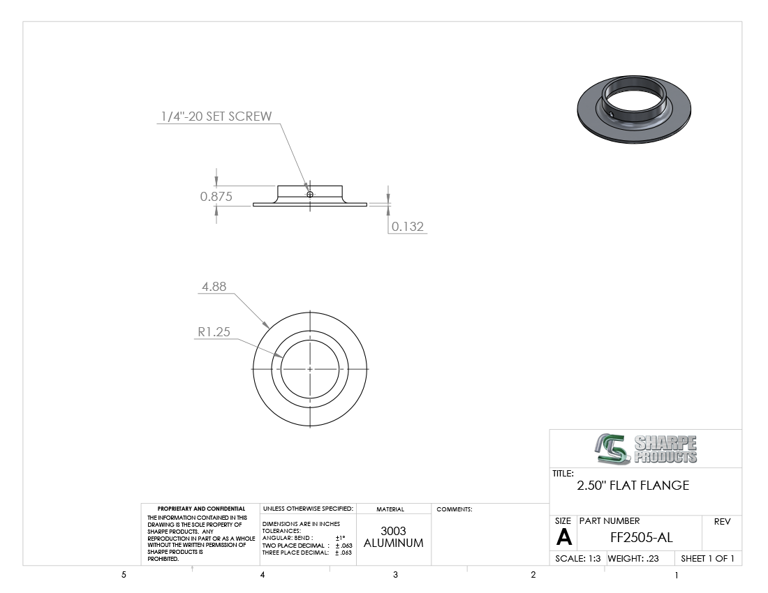 FLAT FLANGE, 2 1/2 O.D. W/ SE SET SCREW, ALUM 3003