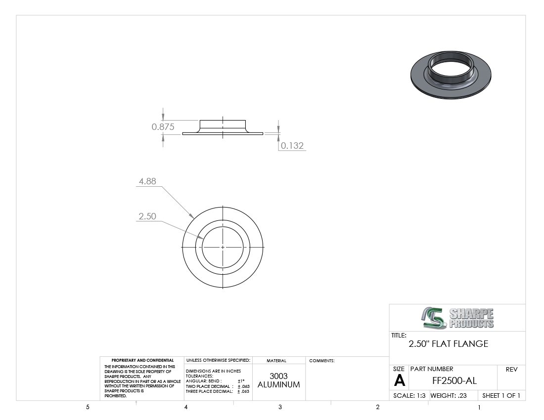 FLAT FLANGE, 2 1/2 O.D. PLAIN ALUM 3003