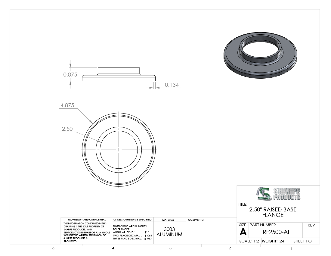 RAISED FLANGE, 2 1/2 O.D. W/ PLAIN, ALUM 3003
