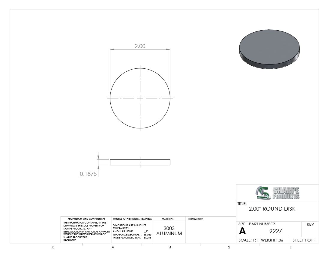 DISK ALUM (3003), 2 DIA. X 3/16 THICK