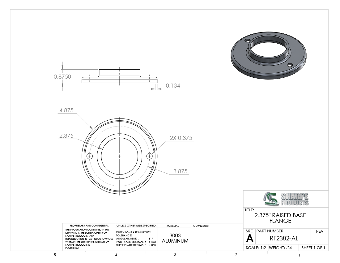 RAISED FLANGE, 2 PIPE (2.375 O.D.) W/ 2 HOLES , ALUM 3003