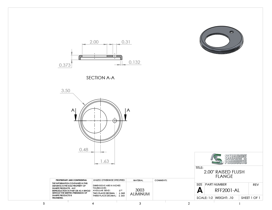 RAISED FLUSH FLANGE, 2 O.D. W/ (1) OFFSET HOLE, ALUM 3003