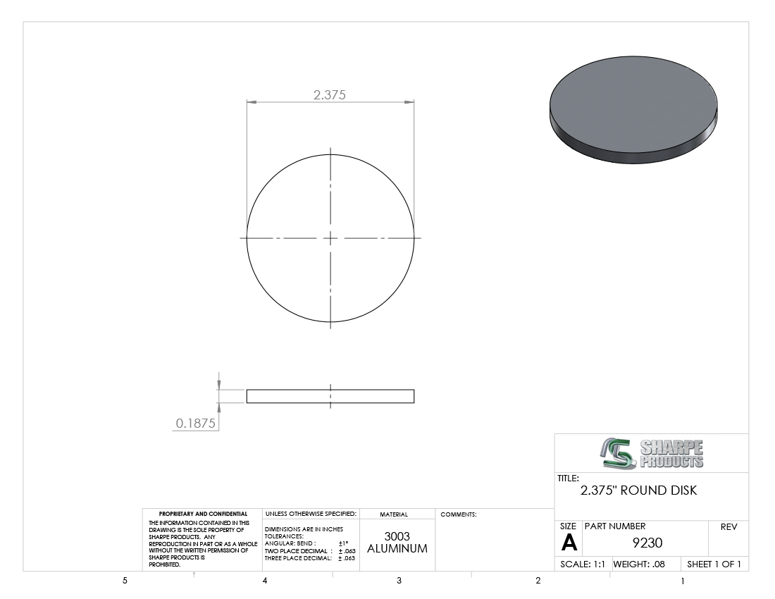 #9230 - ALUMINUM 2.375" DIA. DISK