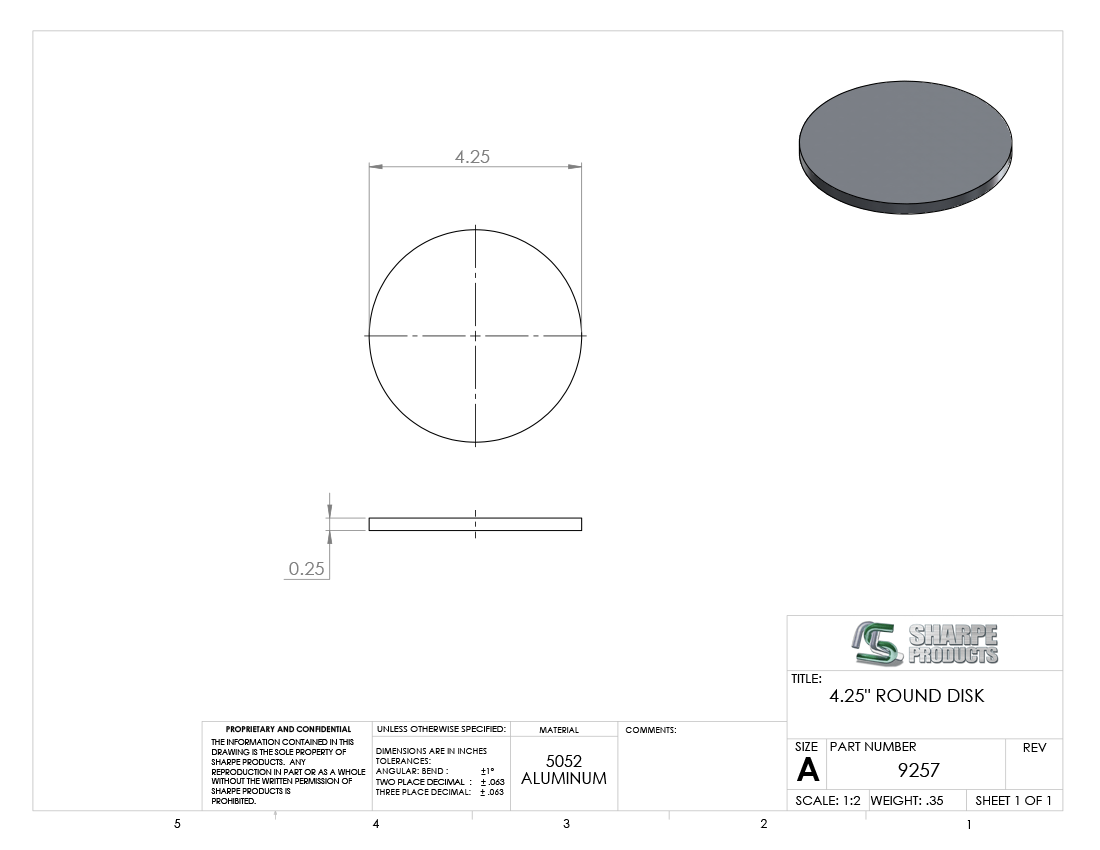 #9257 - ALUMINUM 4.25" DIA. DISK