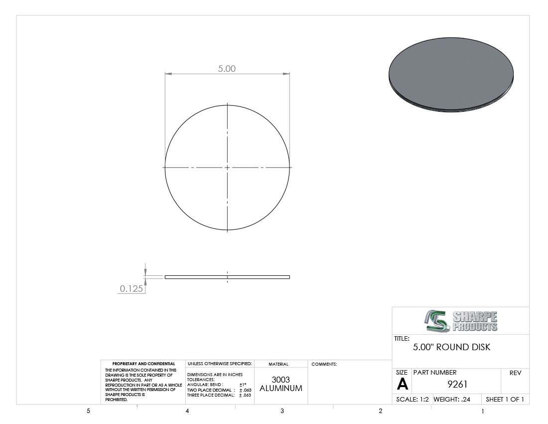 DISK ALUM (3003), 5 DIA. X 1/8 THICK