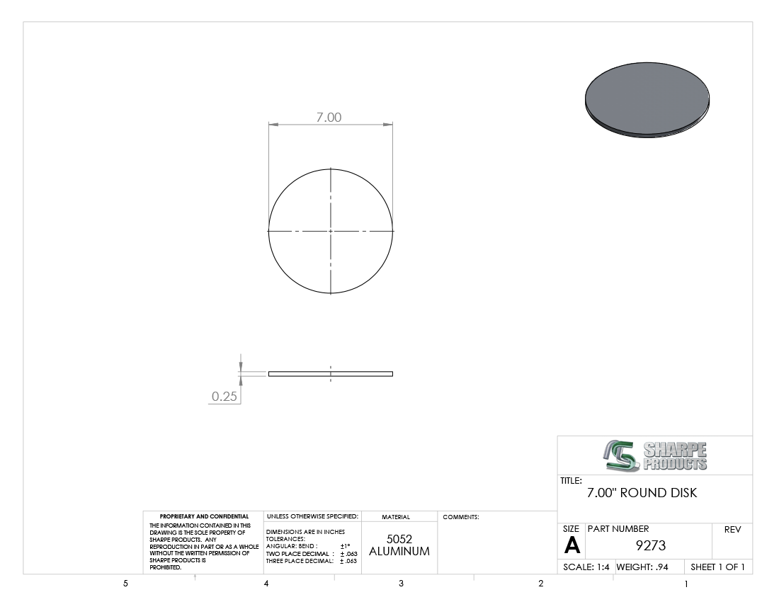 DISK ALUM (5052), 7 DIA. X 1/4 THICK