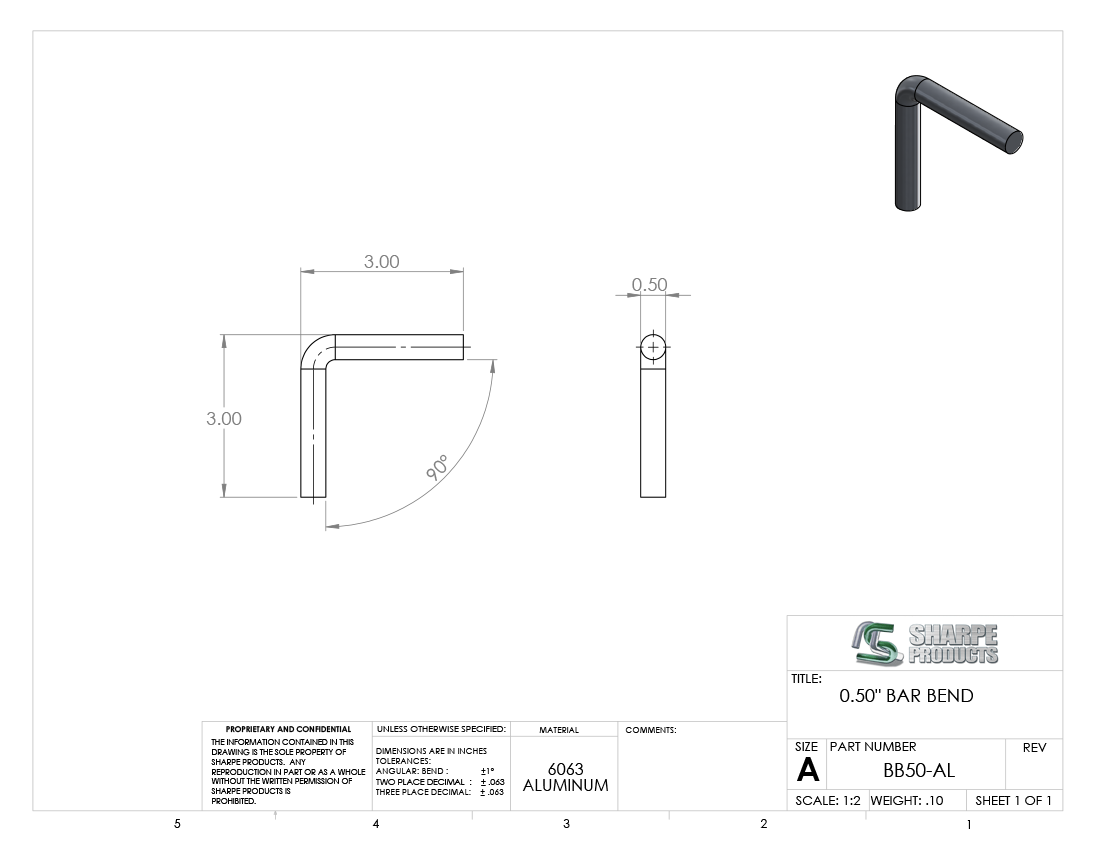 BAR BEND, 1/2 DIA. ROUND, ALUM (6063)