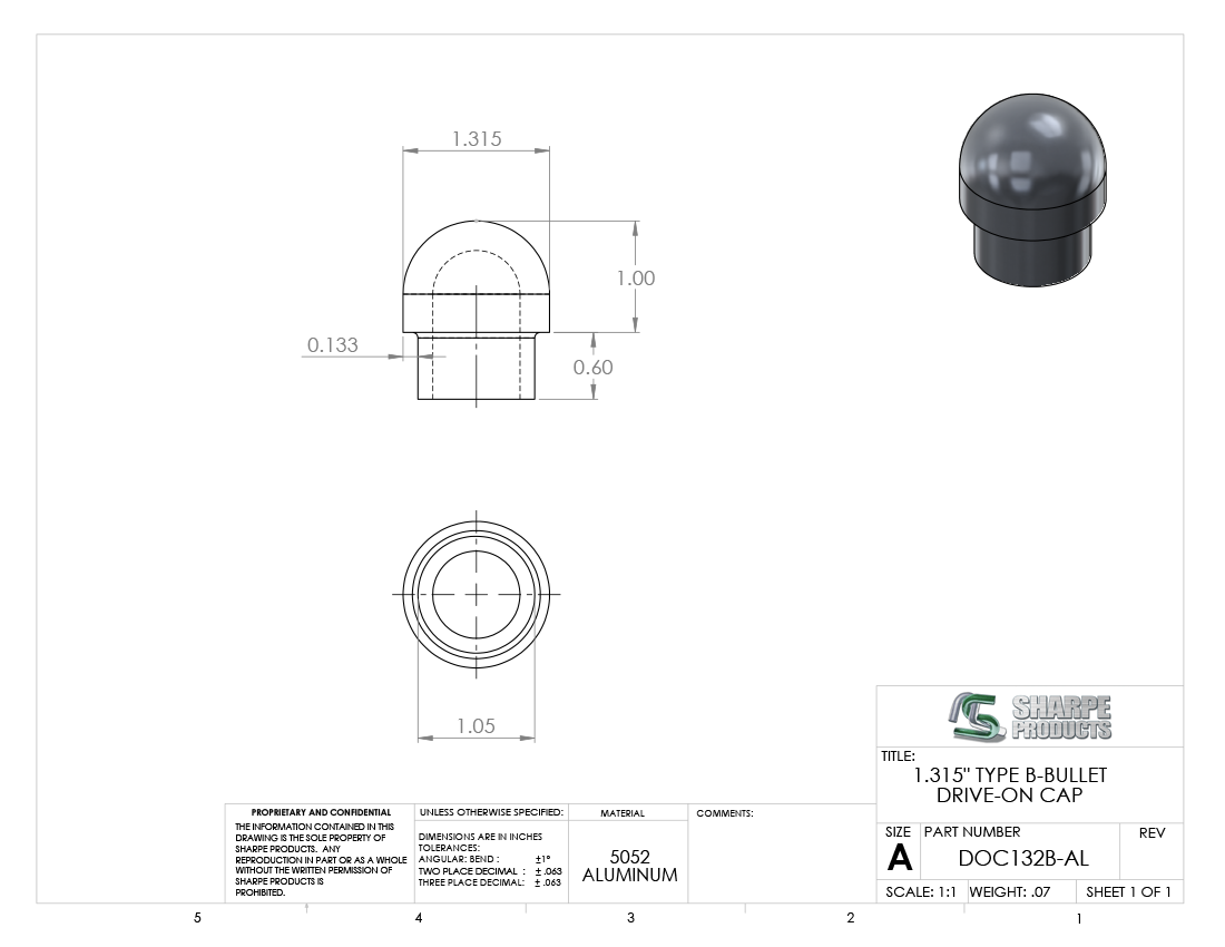 #DOC132B-AL - ALUMINUM BULLET DRIVE-ON CAP 1" PIPE SCH 40