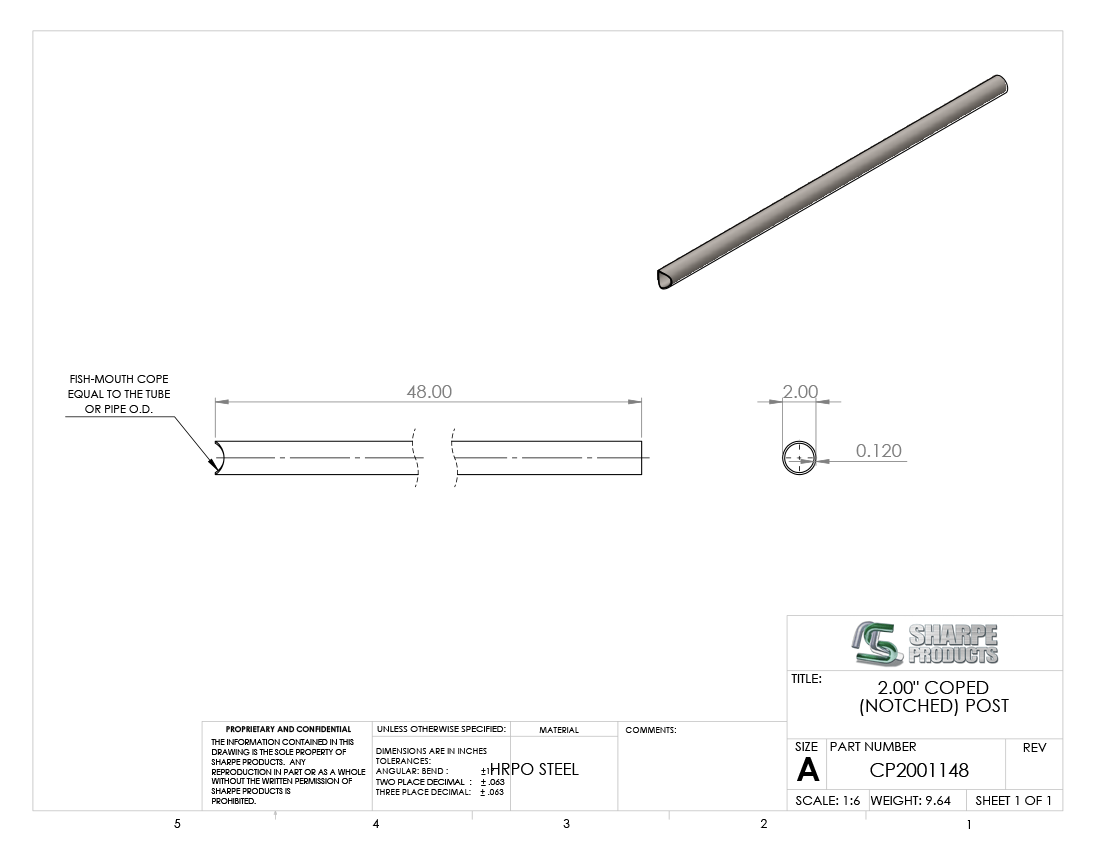 #CP2001148 - COPED POST STEEL, 2" O.D. X .120 WALL (11 GAGE)