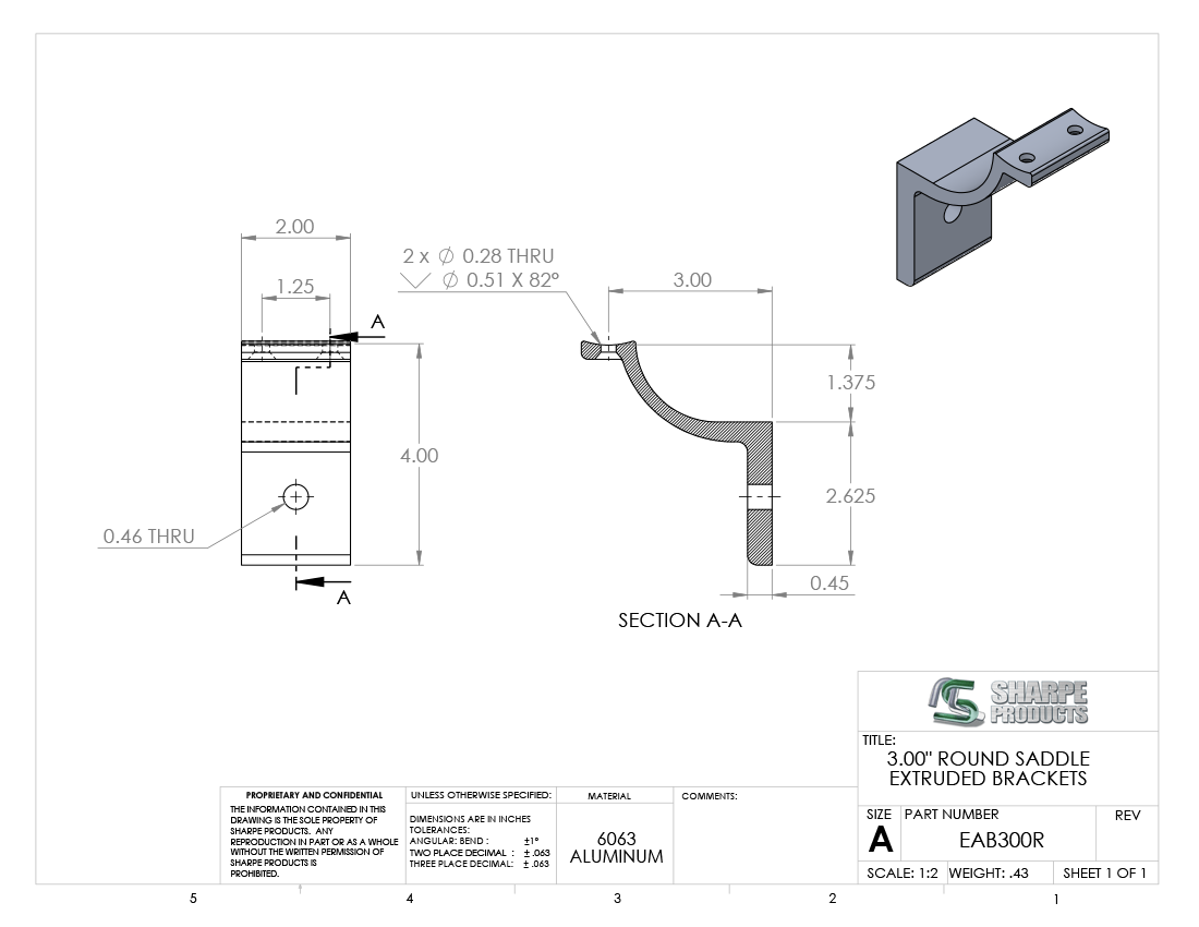 #EAB300R - EXTRUDED ALUMINUM BRACKET, 3" C.L., ROUND SADDLE