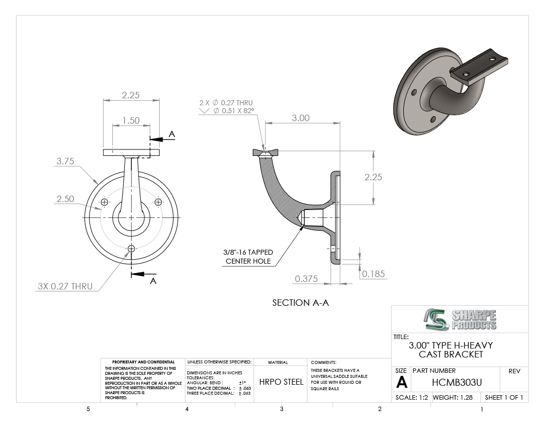 #HCMB303U - HEAVY CAST MALLEABLE BRACKET, 3" C.L., UNIVERSAL SADDLE