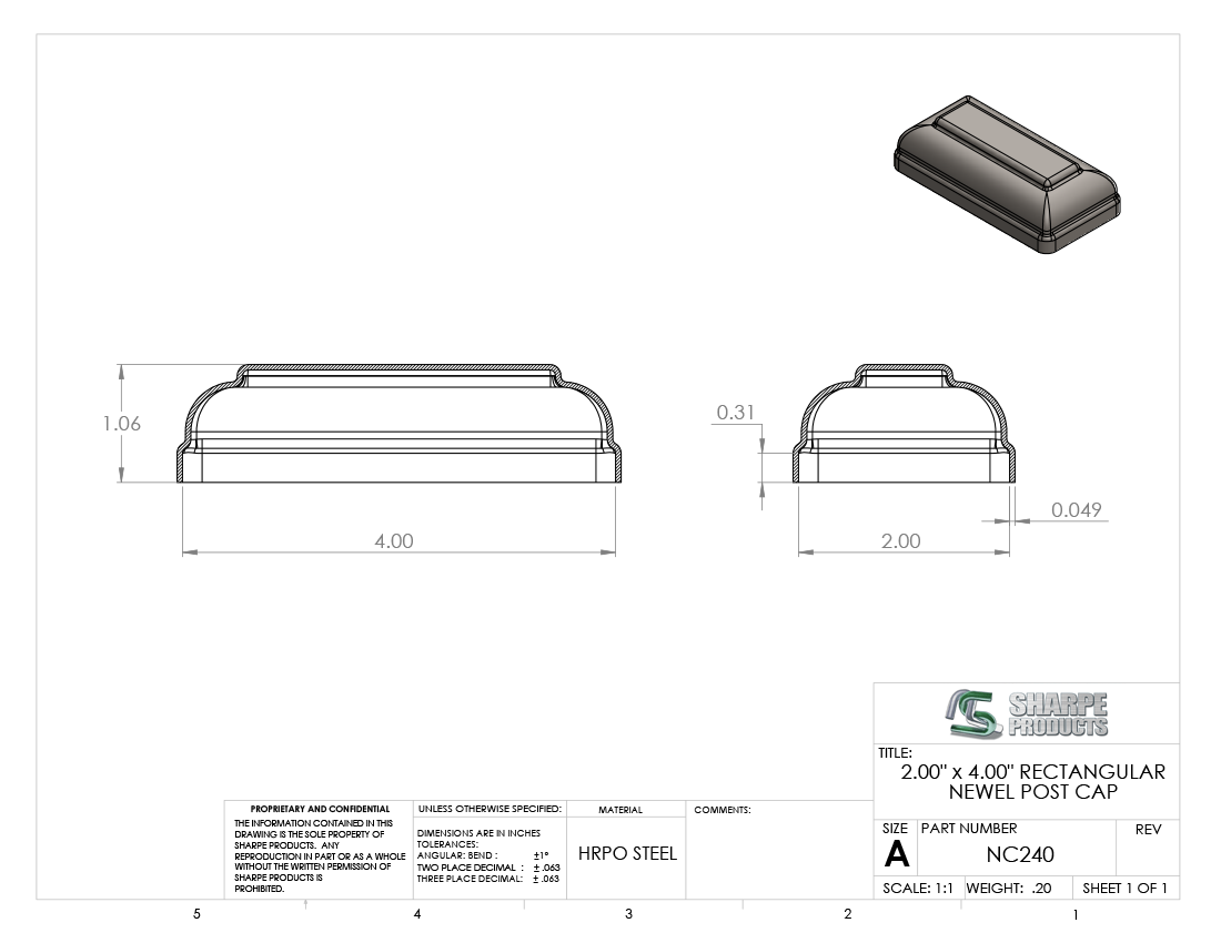 #NC240 - STEEL 2"x4" Rectangular TUBE NEWEL CAP