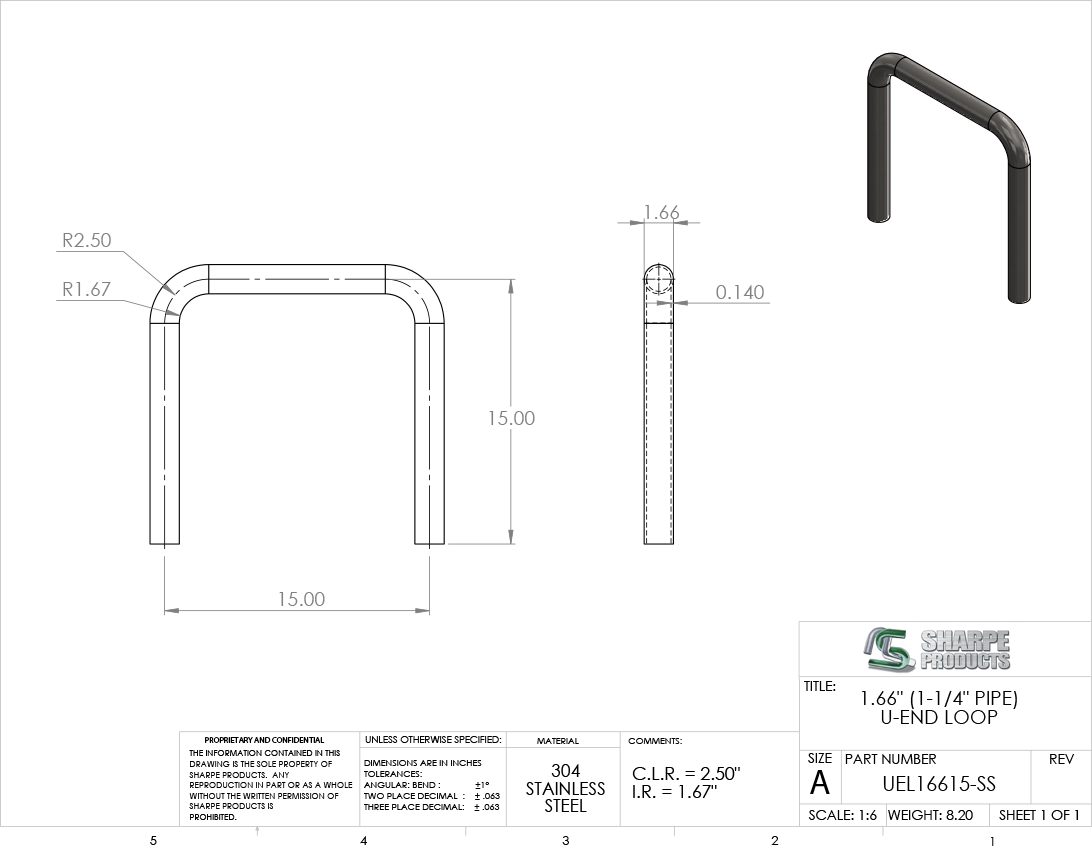 #UEL16615-SS - STAINLESS 1 1/4" PIPE U-END LOOP