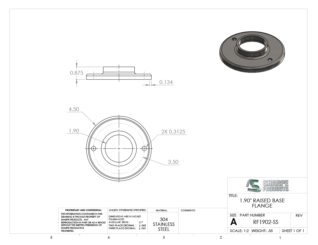 RAISED FLANGE, 1 1/2 PIPE (1.90 O.D.) W/ (2) HOLES, S/S 304
