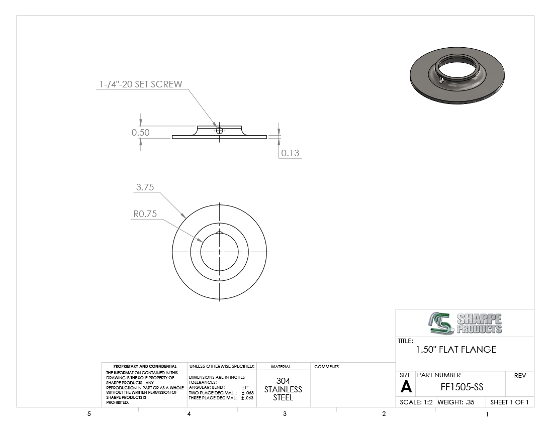 FLAT FLANGE, 1 1/2 O.D. W/ SET SCREW, S/S 304