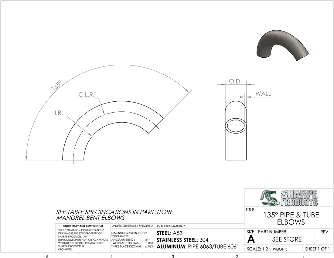 STAINLESS STEEL 1 1/4" PIPE 135° ELBOW 3 C.L.R.