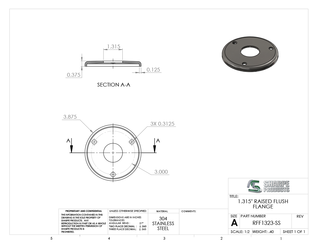 RAISED FLUSH FLANGE, 1 PIPE PIPE (1.315 O.D.) W/ (3) HOLES, S/S 304