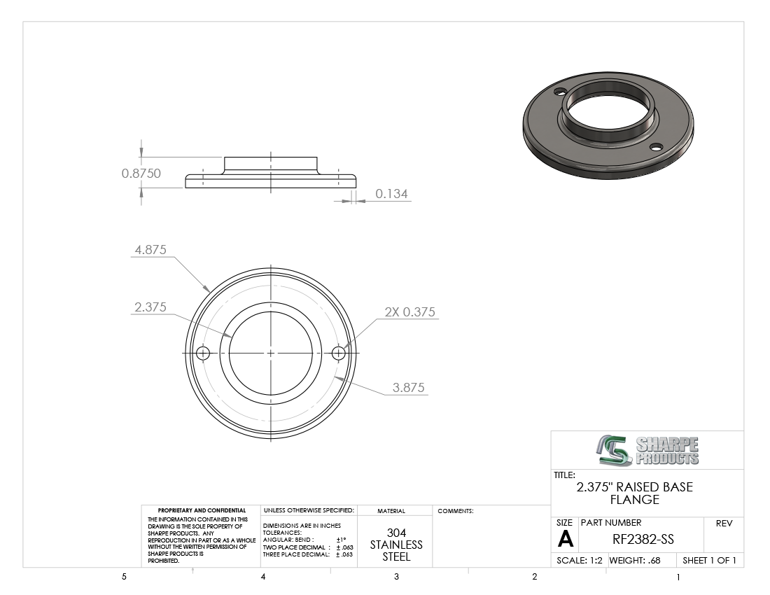 #RF2382-SS - STAINLESS STEEL 2" PIPE RAISED BASE FLANGE