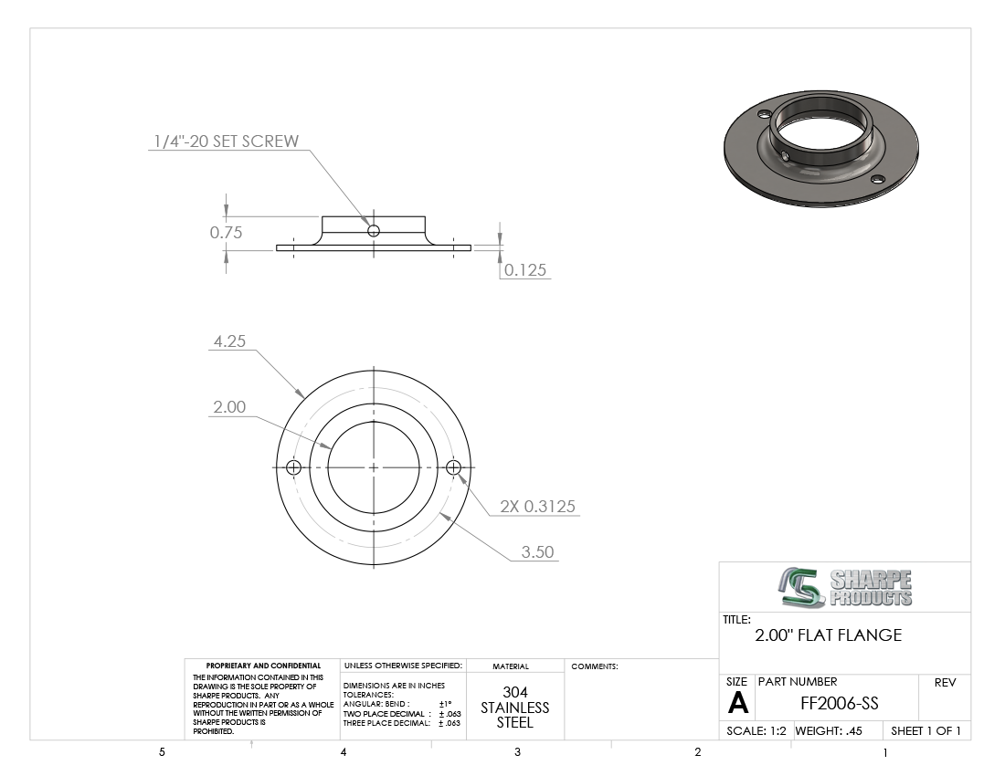 FLAT FLANGE, 2 O.D.W/ (2) HOL HOLES & SET SCREW, S/S 304