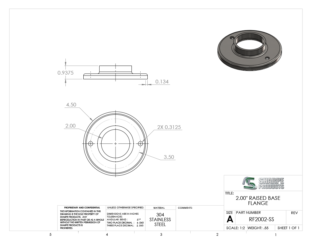 #RF2002-SS - STAINLESS STEEL 2" TUBE RAISED BASE FLANGE