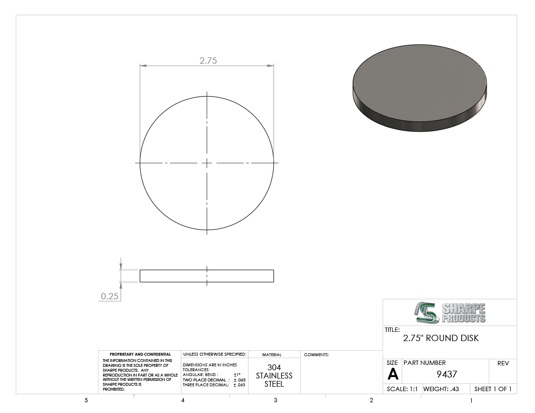#9437 - STAINLESS STEEL 2.75" DIA. DISK