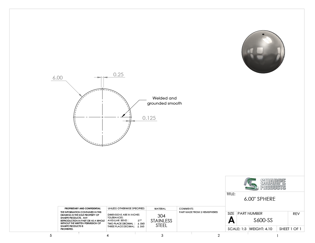 #S600-SS - STAINLESS STEEL 6" DIA. SPHERE