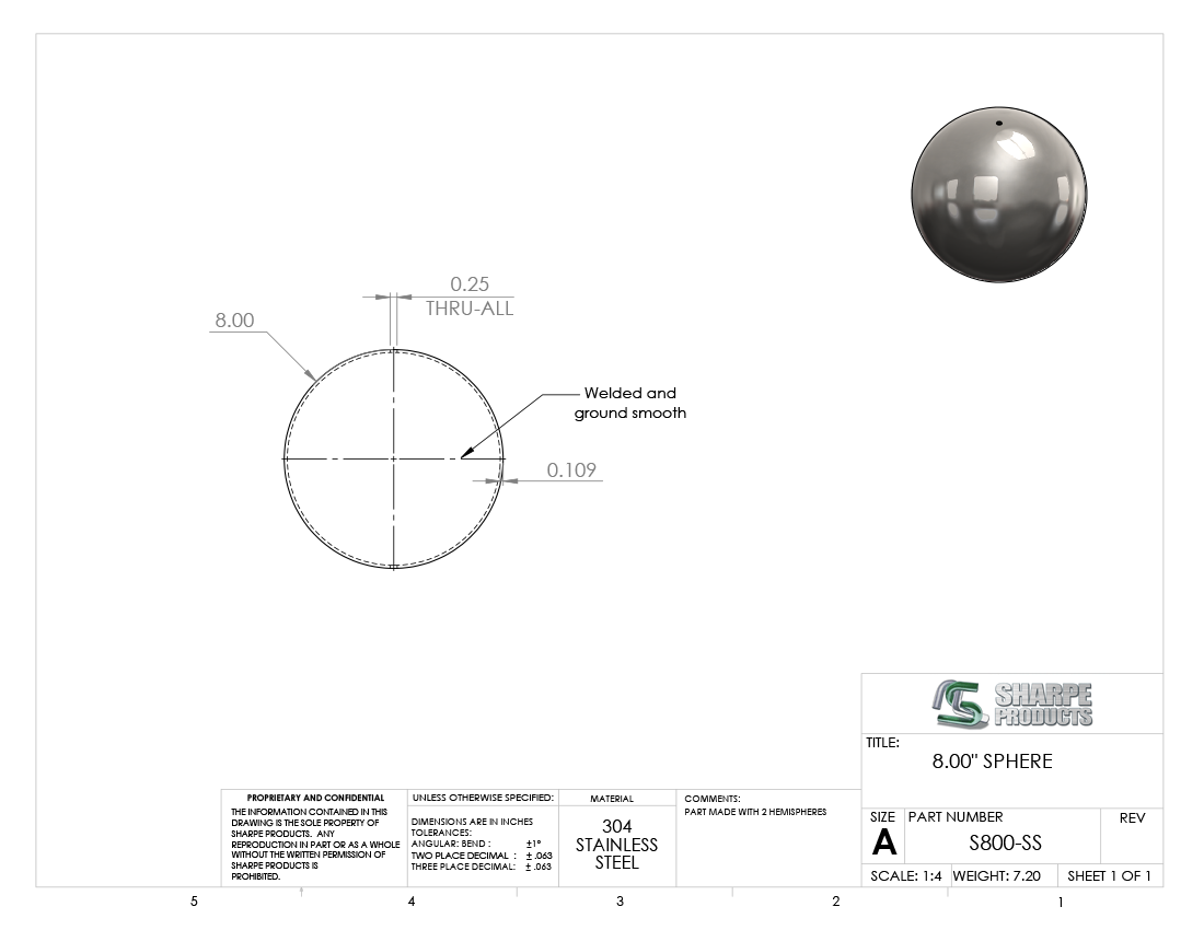 #S800-SS - STAINLESS STEEL 8" DIA. SPHERE