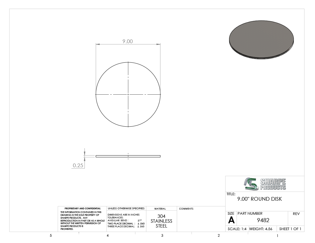 DISK S/S 304, 9 DIA. X 1/4 THICK