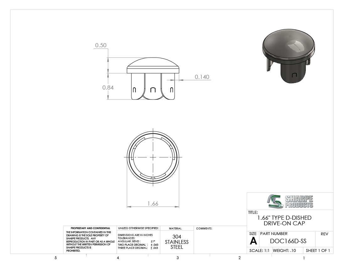 #DOC166D-SS - STAINLESS STEEL DISHED DRIVE-ON CAP 1-1/4" PIPE SCH 40