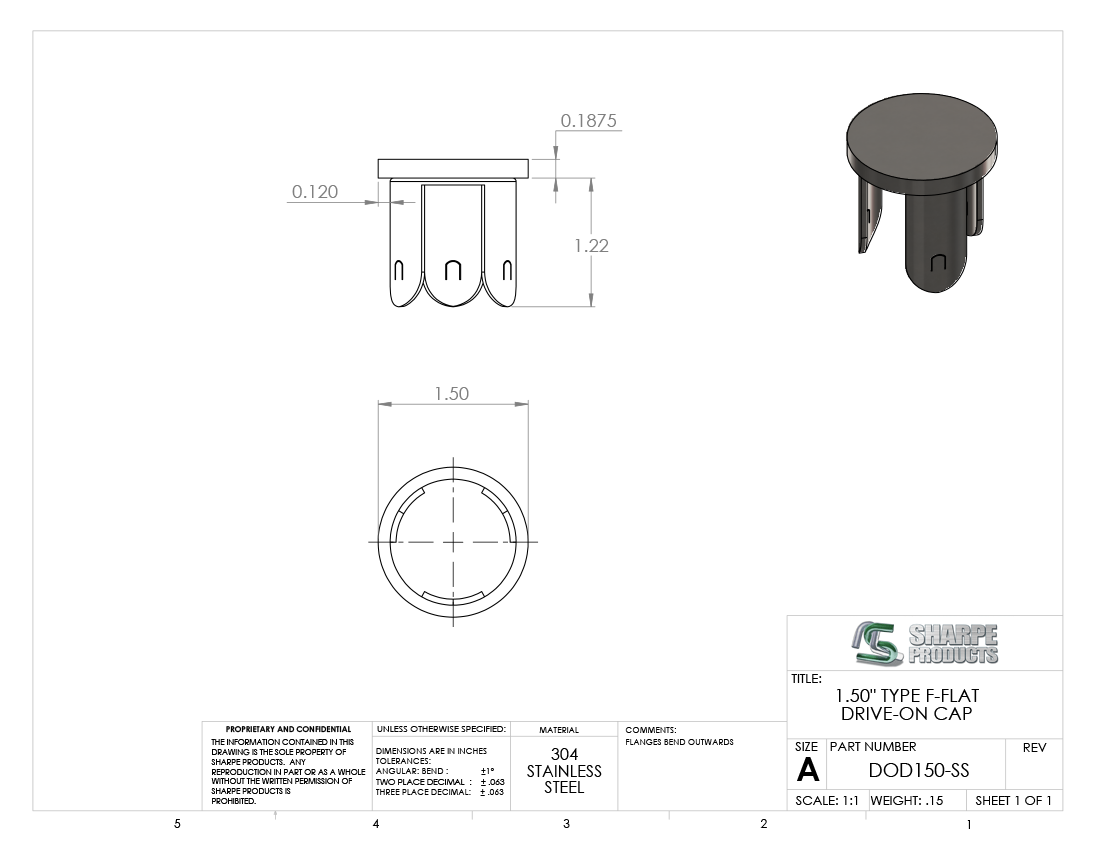 #DOD150-SS - STAINLESS STEEL FLAT DRIVE-ON CAP 1 1/2" TUBE 11 Ga.