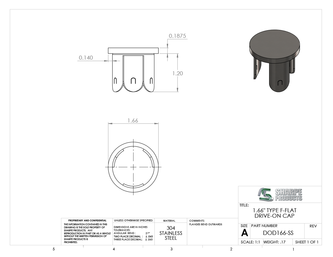 #DOD166-SS - STAINLESS STEEL FLAT DRIVE-ON CAP 1 1/4" PIPE SCH 40