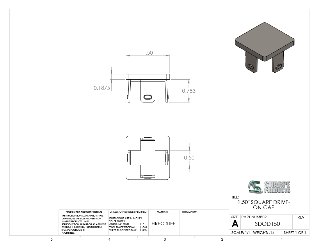 #SDOD150 - STEEL 1-1/2" SQ. TUBE DRIVE-ON CAP