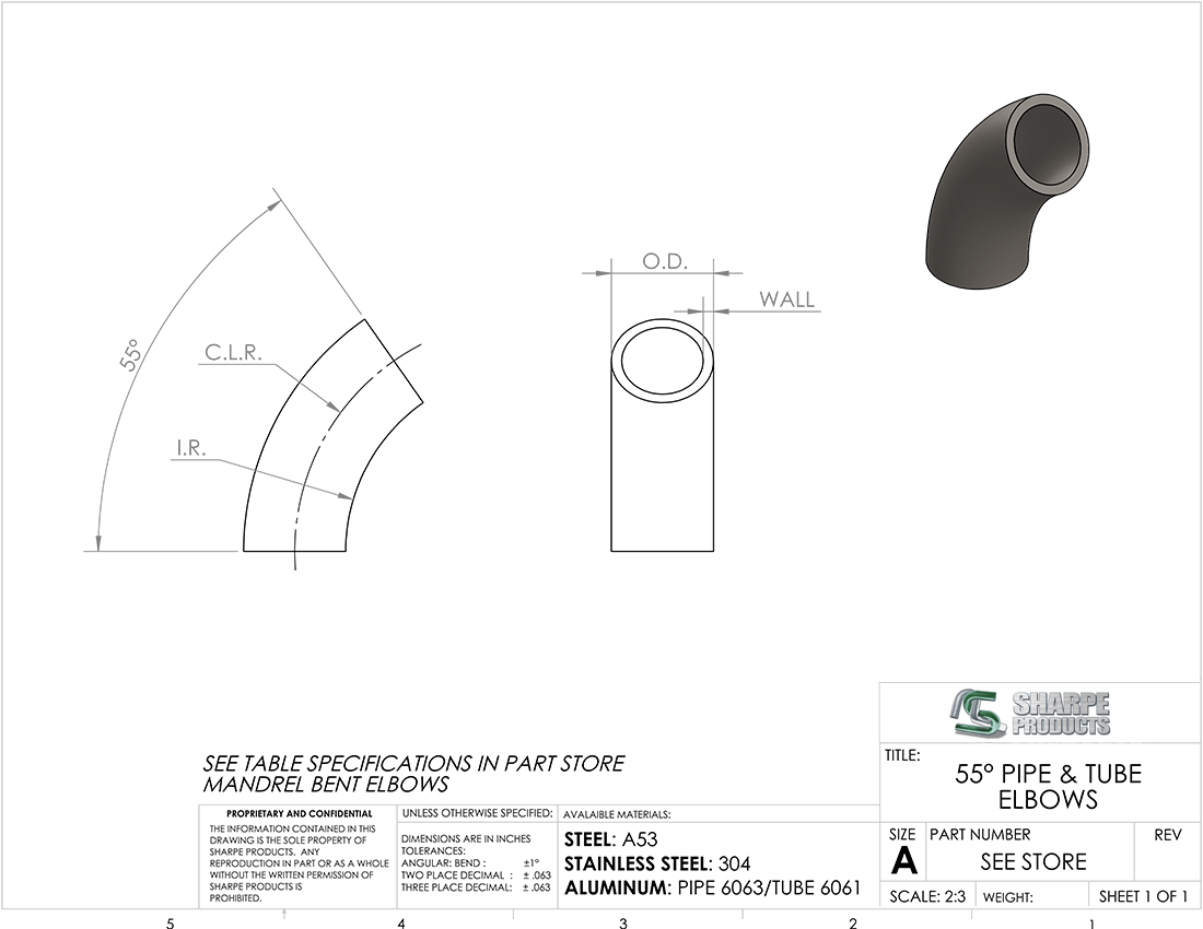 1 1/2 O.D. X .120 WALL (11 GAGE) 55° ELL 2 1/2 C.L.R., STEEL