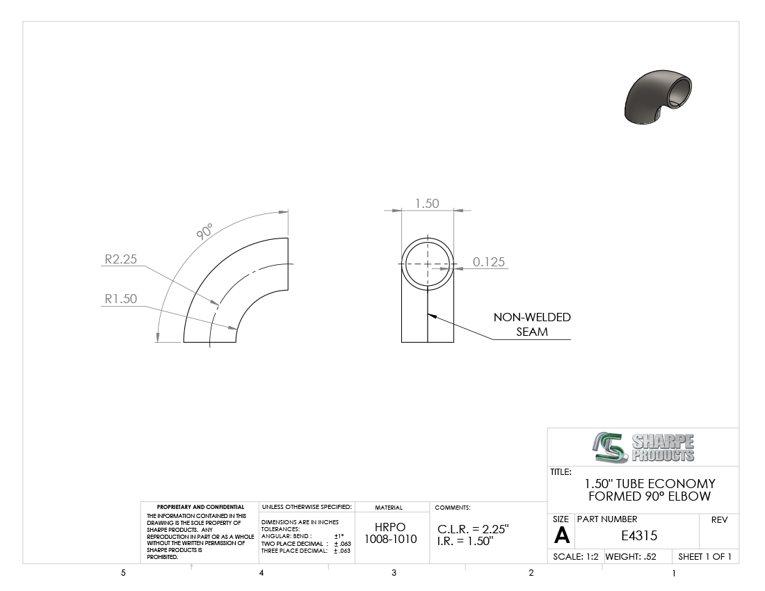 #E4315 - STEEL 1-1/2" TUBE 90° ECONOMY FORMED ELBOW 1.5" I.R.