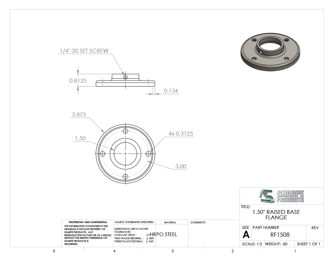 RAISED FLANGE, 1 1/2 O.D. W/ (4) HOLES & SET SCREW, STEEL