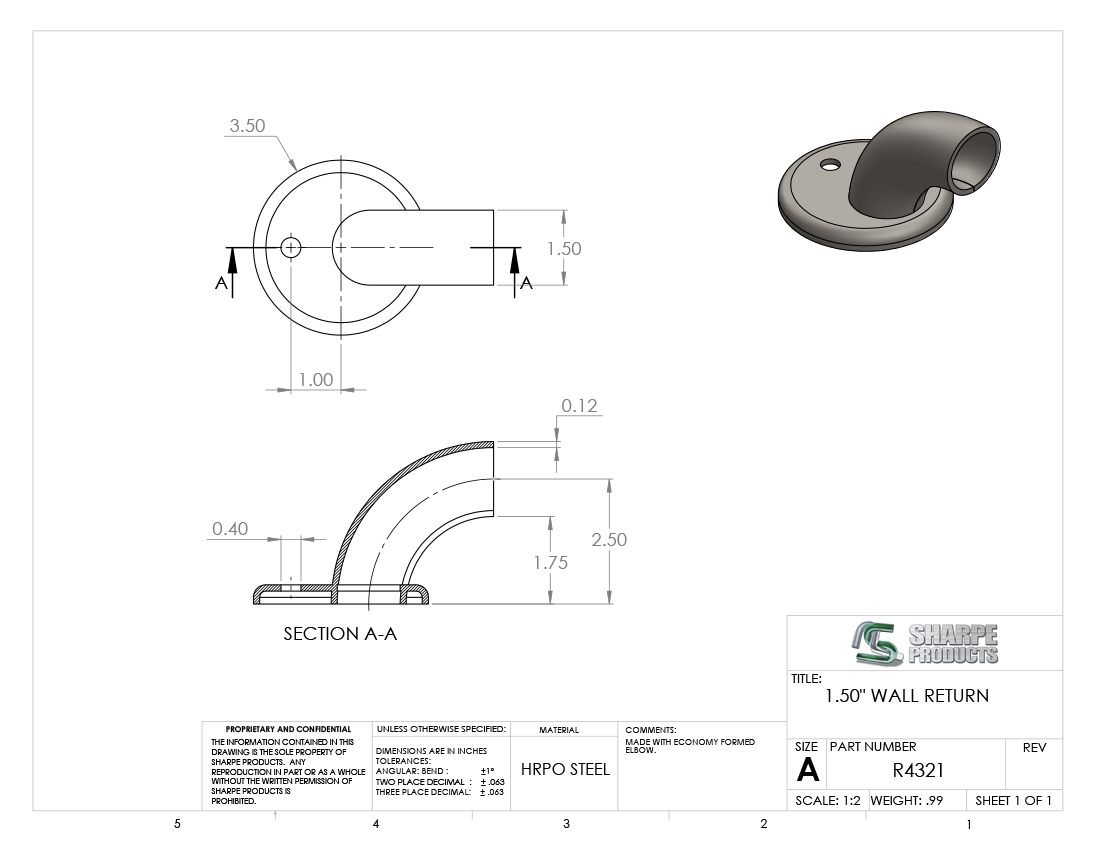 #R4321 - STEEL 1 1/2" TUBE RETURN