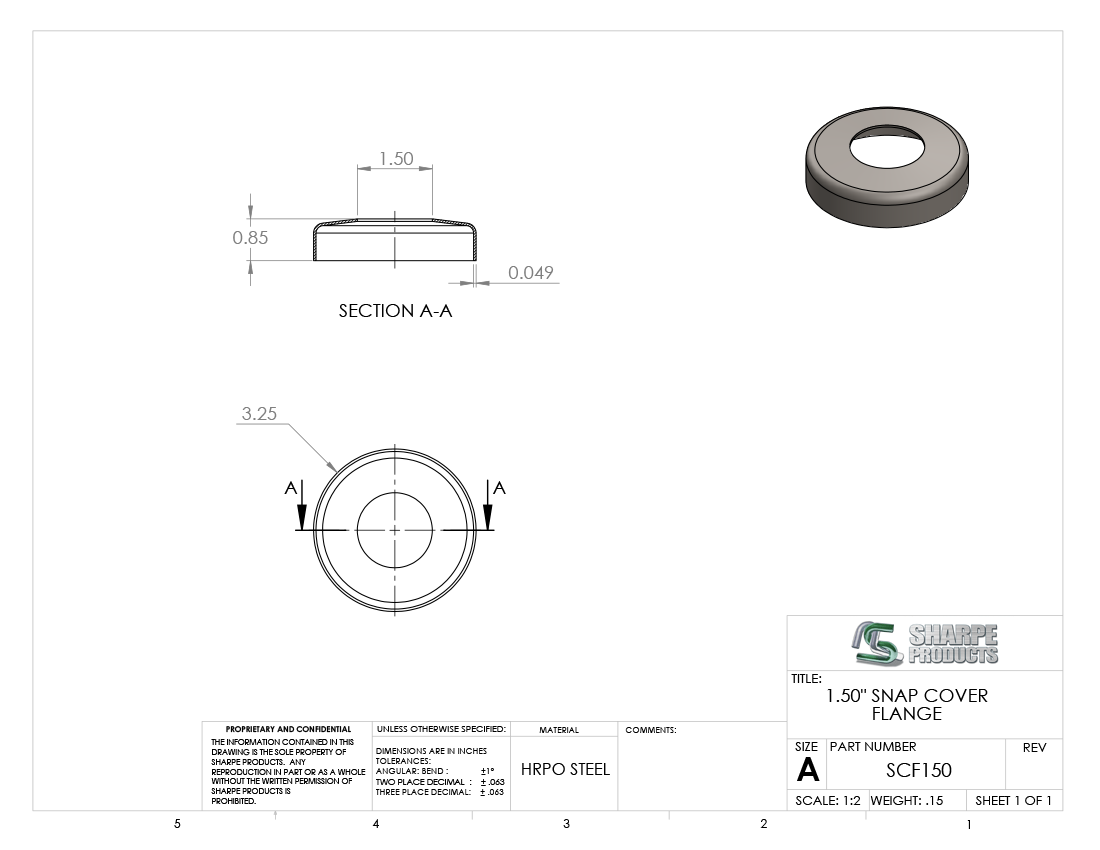 #SCF150 - STEEL 1 1/2" TUBE SNAP COVER FLANGE