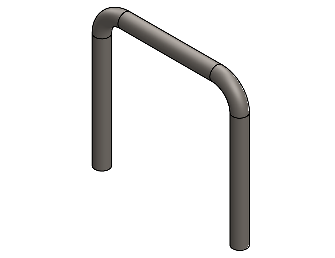 U-END LOOP, 1 1/2 O.D. X .120 WALL (11 GAGE) BENT 90° ON A 2 1/2 C.L.R. (2) PLCS., 15 C-C W/(2) 15 C-E LEGS, STEEL