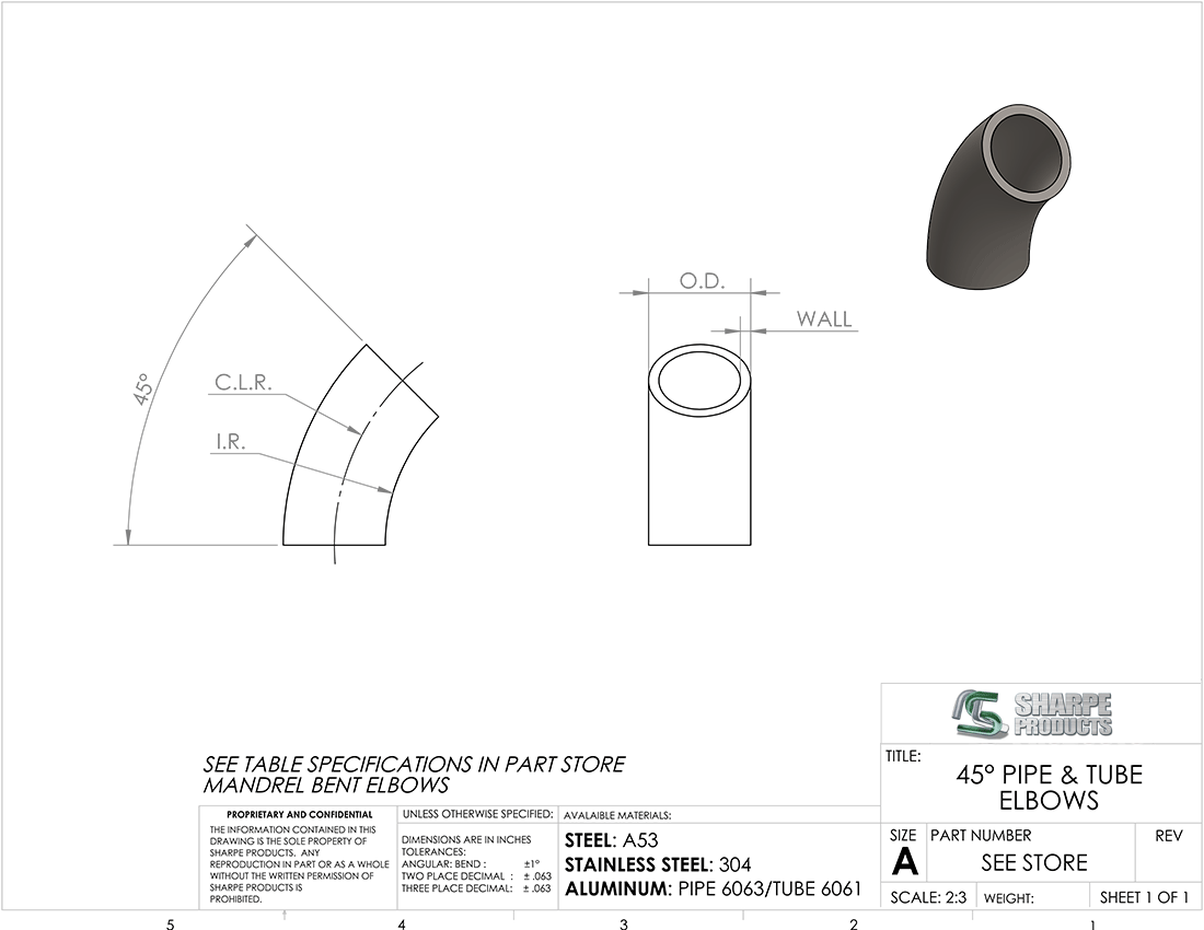 1 1/4 SCH 40 (1.66 OD) 45 D.