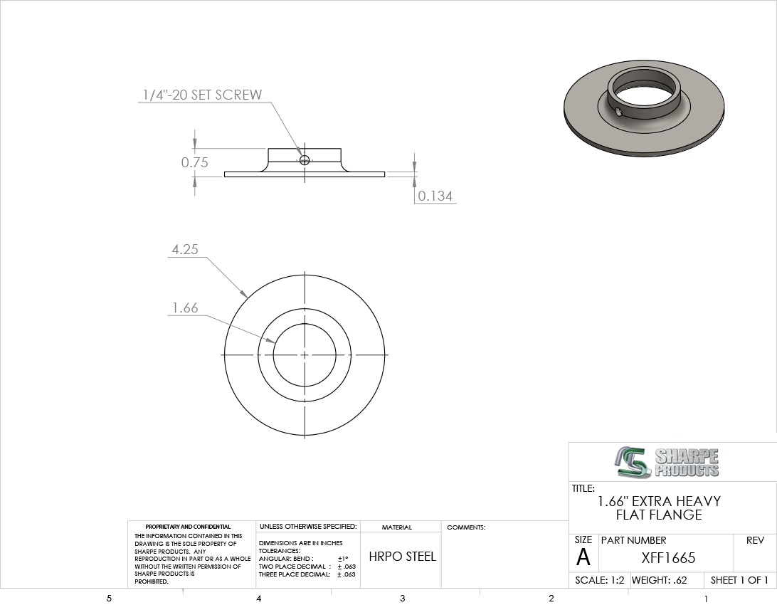 XTRA HVY FLAT FLANGE, 1 1/4 PIPE (1.66 O.D.) W/ SET SCREW, STEEL