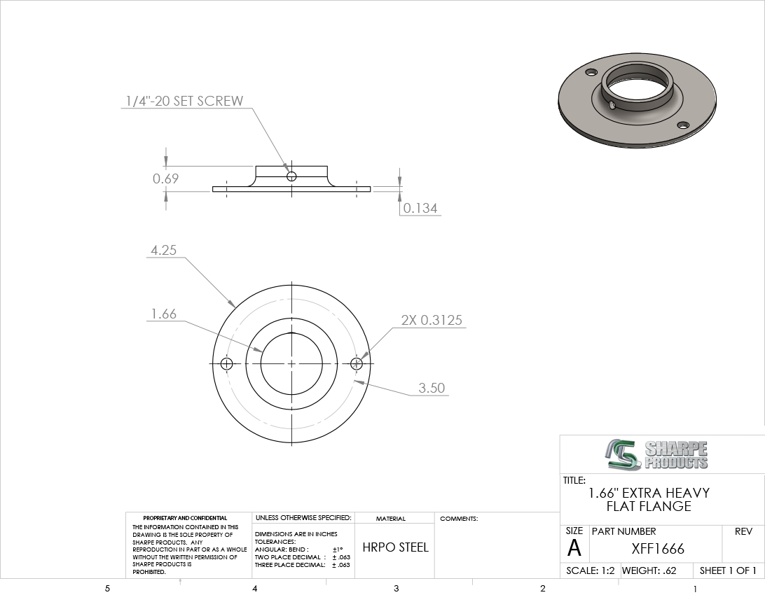 XTRA HVY FLAT FLANGE, 1 1/4 (1.66 O.D.) W/ (2) HOLES & SET SCREW