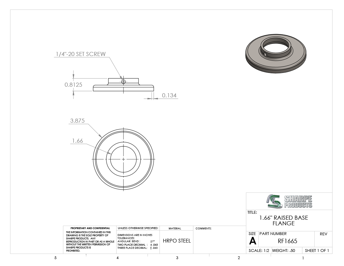 RAISED FLANGE, 1 1/4 PIPE (1.66 O.D.) W/ SET SCREW, STEEL